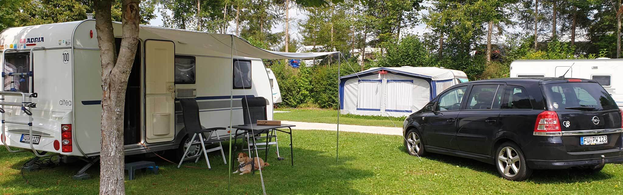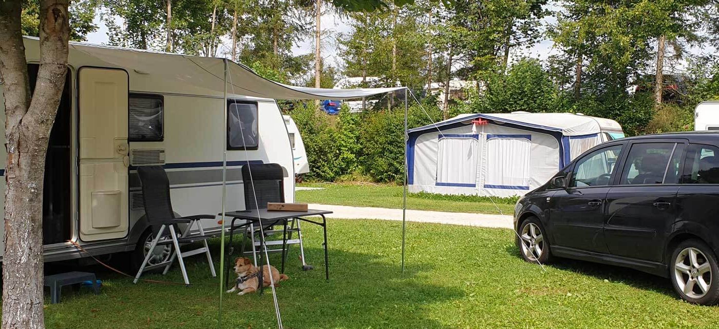 Reden irgendwas von Camping. Kein Plan was das sein soll. 1 Stunde Auto fahren. Gefällt mir, aber in meinem Magen ist danach bestimmt Schleudergang angesagt. Bin ich noch nicht so gewöhnt. Meine Chefs sind auch aufgeregt. Das Spür ich ganz genau. Ist auch ihr erstes mal mit der rollenden Hütte. Und Herrchen muss das Teil mit dem Auto ziehen. Auweia.“