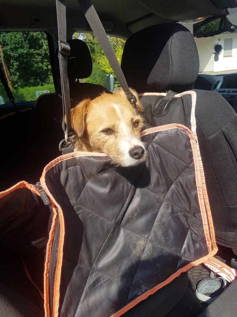Und Pablo ist schon sehr aufgeregt, was hier gleich passiert. Oder hofft nur, dass wir das kleine Kerlchen nicht daheim lassen. Aber niemals ohne unseren Pablo auf Reisen. Das war auch schon mit unseren beiden Hunden vorher so. Immer im Urlaub dabei oder gar nicht weg.