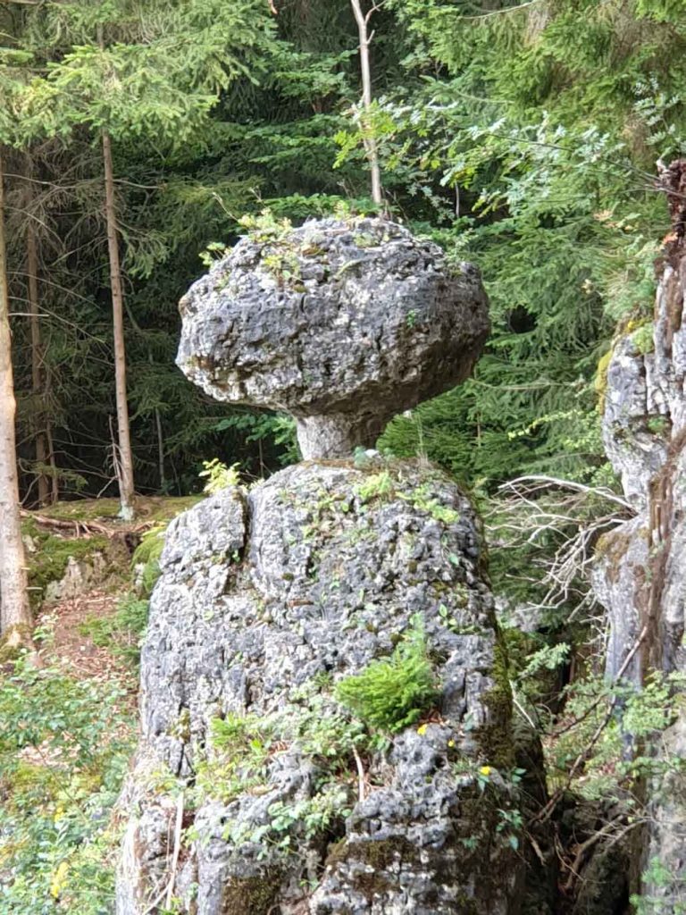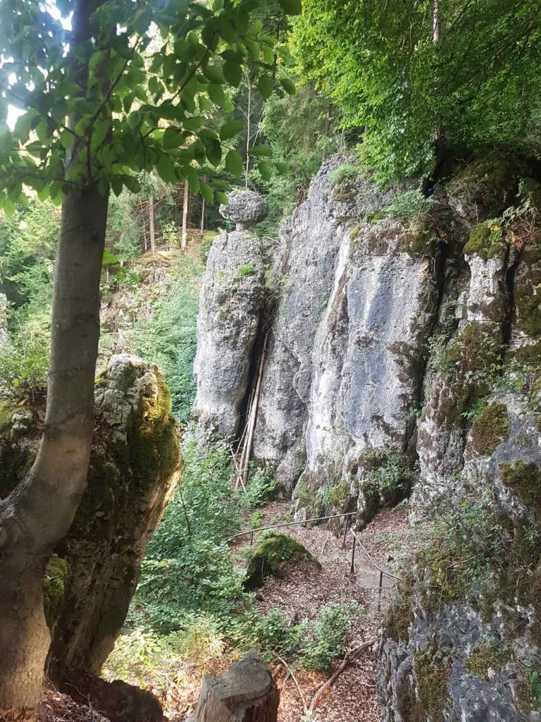 Jetzt noch entspannt ein Tässlein Kaffee dank meiner Chefin und schon geht’s los in Wanderklamotten Richtung Velburg bis zur 5 km entfernten Aussichtsplattform beim Schwammerl. Festes Schuhwerk sollte auch sein.