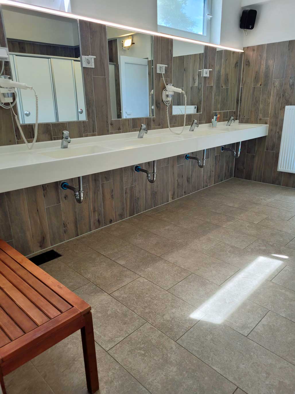 Die Damen an der Rezeption waren sehr freundlich beim Einchecken und erklärten soweit alles von der Lage des Stellplatzes bis zur Müllentsorgung. Unser Standard-Stellplatz war komplett mit Wiese und Eben. Strom und Wasser in unmittelbarer Nähe. Rangieren mit dem Wohnwagen war dank Mover kein Problem. Die sanitären Anlagen sehr sauber. Zur Entsorgungsstation war es auch nicht weit. Allerdings liegt die Plattform zur Entsorgung des Grauwasser’s für Wohnmobile sehr ungünstig. Je nachdem wo man seinen Stellplatz hat, kommt es bei der Abreise zu Behinderungen/Stau/längere Wartezeiten, da die Womo’s beim Ablassen ohne Rücksicht auf Verluste einfach im Weg stehen.