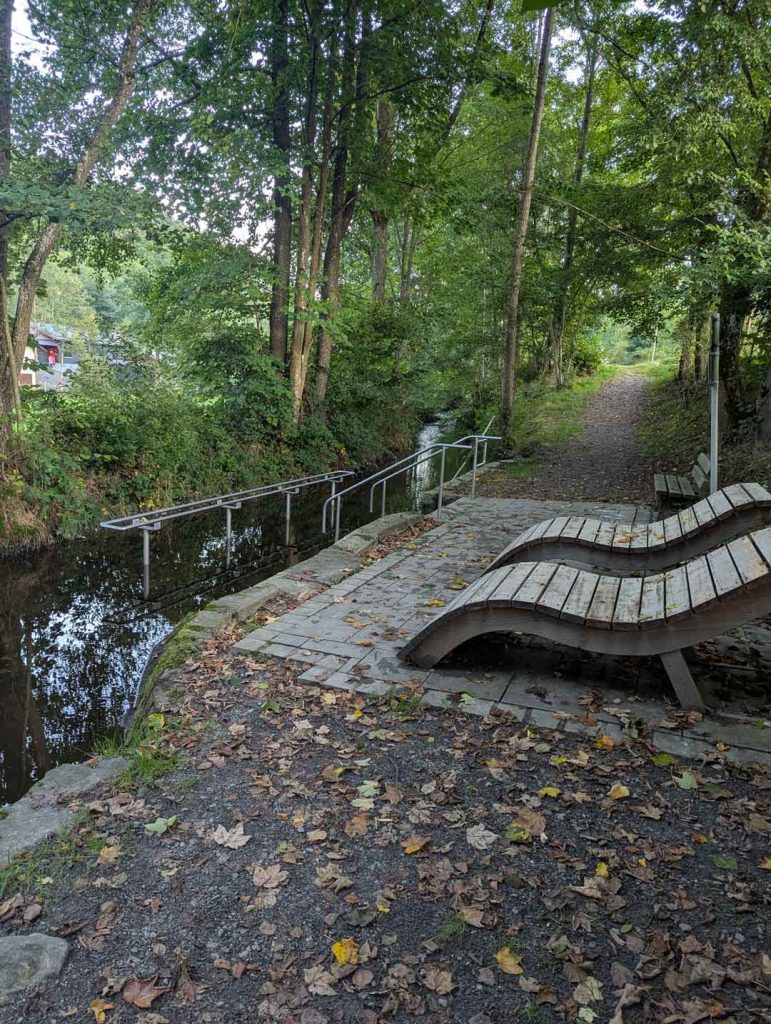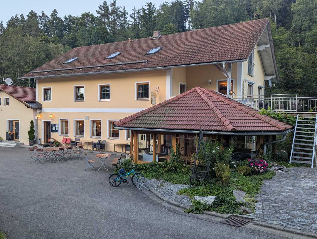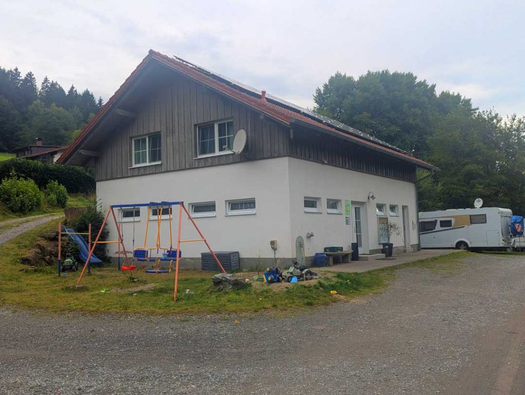 Das Gasthaus mit überdachten Biergarten, kleinem Spielplatz und die Anmeldung befinden sich kurz vor dem eigentlichen Campingplatz. Dazwischen befindet sich noch die Kneippanlage Unterholzen mitten im Bach um seinen Füßen nach einer ausgedehnten Wanderung Gutes zu tun.