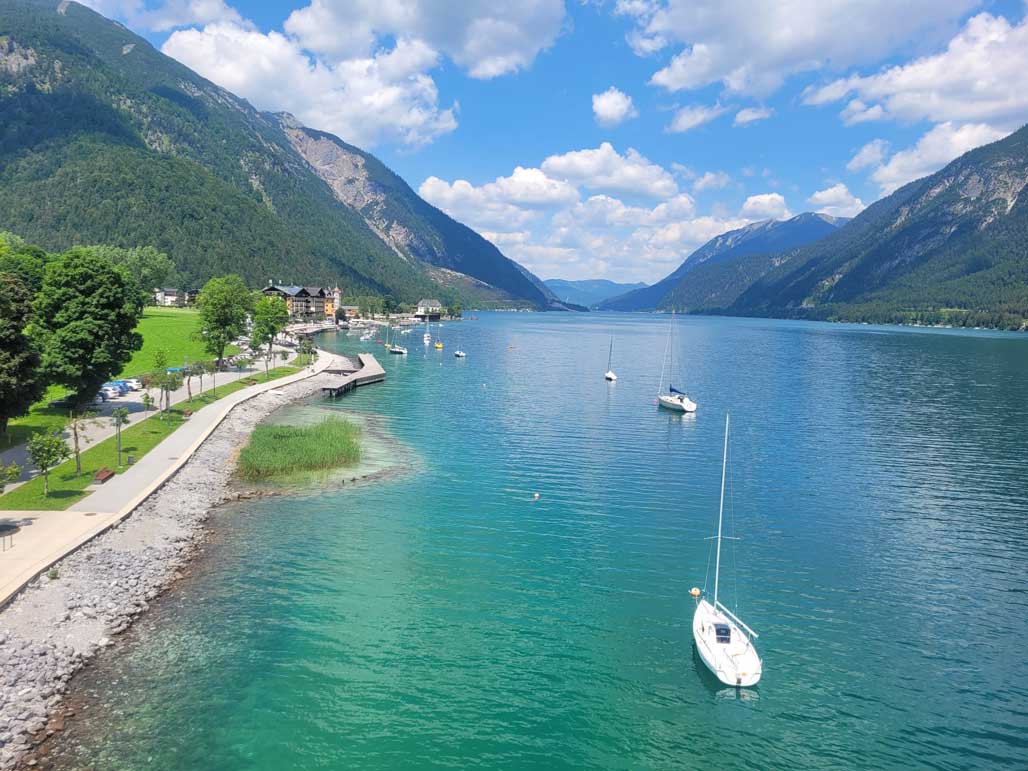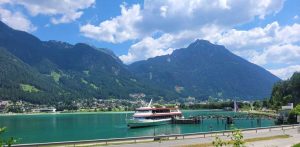 Österreich, Achensee, Maurach, Karwendel Camping unser nächstes Urlaubsziel. Die Anfahrt über A99 München und Inntalautobahn Richtung Innsbruck dauerte staubedingt 7 statt der geplanten 4.5 Stunden. Es gibt eine weitere Strecke am Tegernsee entlang, diese ist jedoch nur für magenfeste Hunde zu empfehlen.
