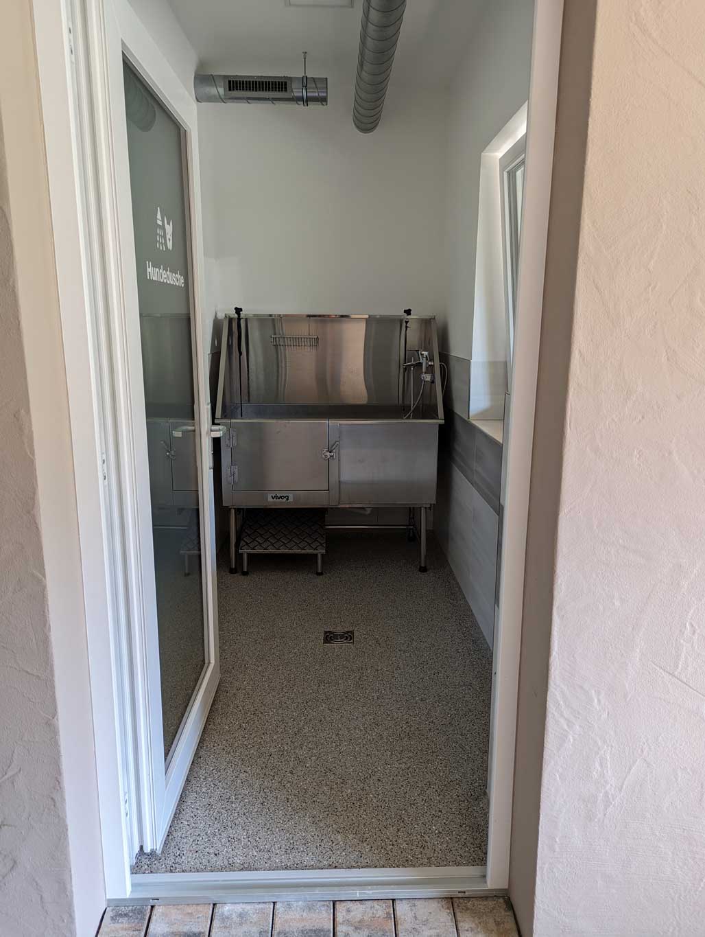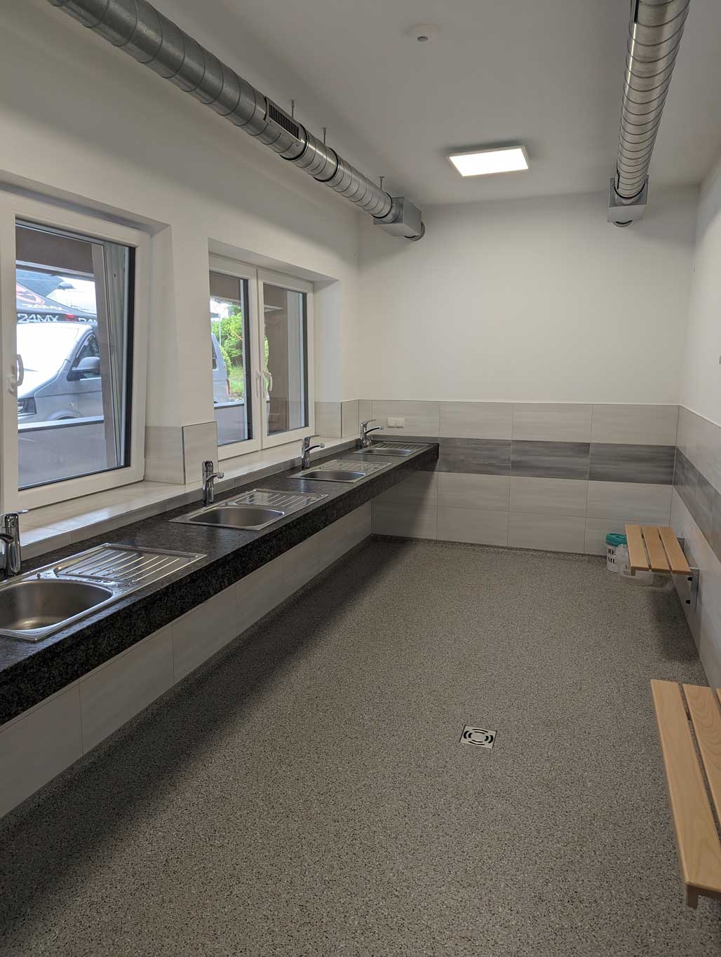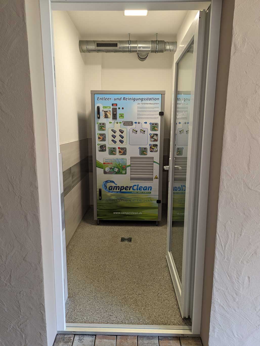 Freizeit- und Sanitärgebäude mit Miet-Badezimmer, Hundedusche, Camperclean, Kaffee- und Snackautomaten, Kinderspielraum, Kicker, Fitnessraum, Skiraum usw.